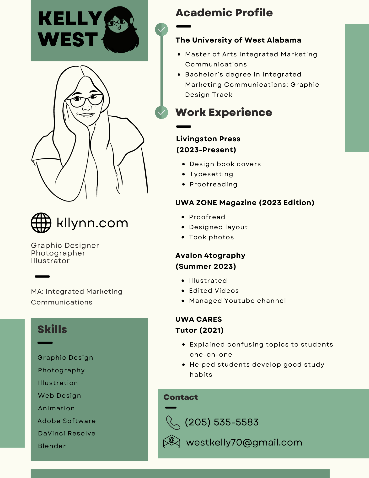 I have a Master of Arts in Integrated Marketing Communications from The University of West Alabama and currently work as a Graphic Designer at Livingston Press in Livingston, Alabama.